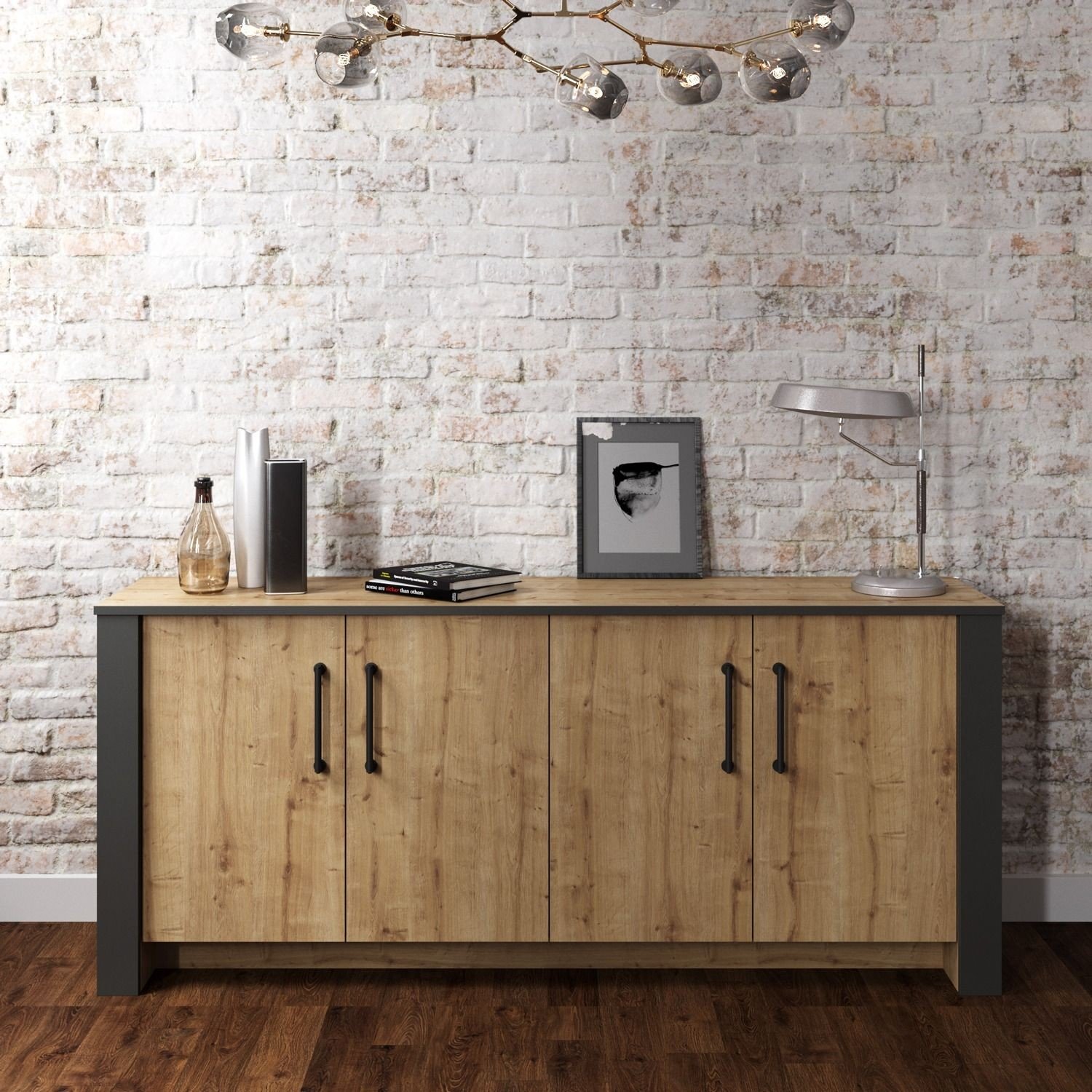 Características Aparador PHILIPPA, biIaminado roble con gris oscuro, 180 cms.