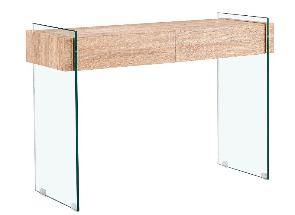 Consola de diseño, dos cajones, cristal templado, 10 mm. de espesor.
