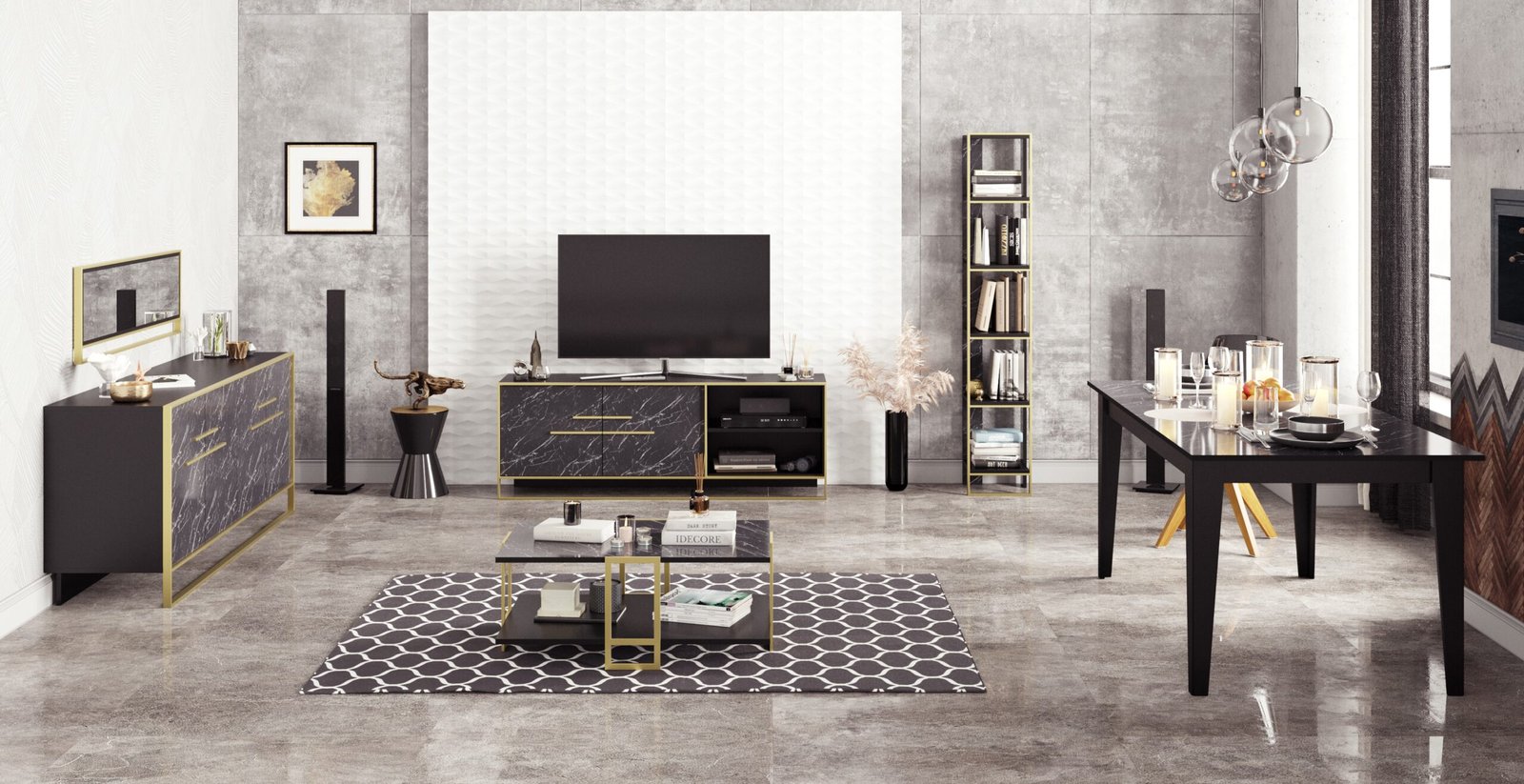 Mesa de comedor, bilaminado mármol negro