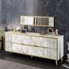 Además, según su descripción, sobresale por: Espejo bilaminado mármol blanco con detalles dorados..