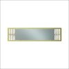 FICHA TÉCNICA: -Espejo de diseño -Fabricado con FSC® – material de madera certificado materia prima que no daña el medio ambiente y asegura su durabilidad y resistencia. -Acabado bilaminado de color frontal en mármol blanco con detalles en tonos dorados -Dispone de aparador a juego DIMENSIONES: Ancho: 120 cms Fondo: 2 cms Altura: 29,5 cms. EMBALAJE: Plástico, porexpan y cartón. UNIDADES: 1 VOLUMEN: 0,036 m3 – Peso bruto: 7 kgs
