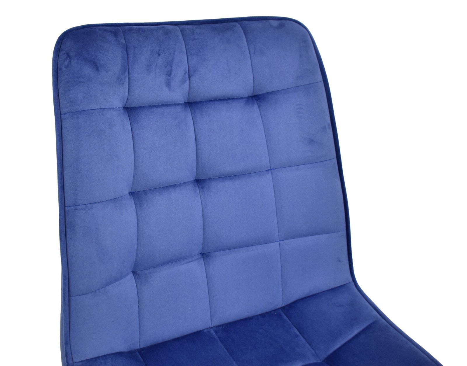 Además, según su descripción, sobresale por: Silla de diseño, armazón metálico con acabado dorado, asiento y respaldo tapizados en tejido velvet de color azul. Otros colores disponibles..