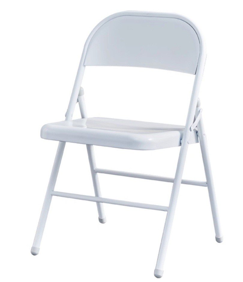 Además, según su descripción, sobresale por: Silla plegable, armazón tubular con acabado en epoxi blanco, asiento y respaldo de metal de color blanco.