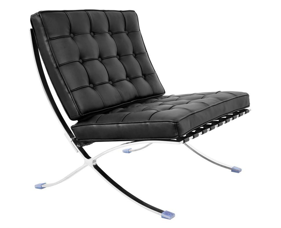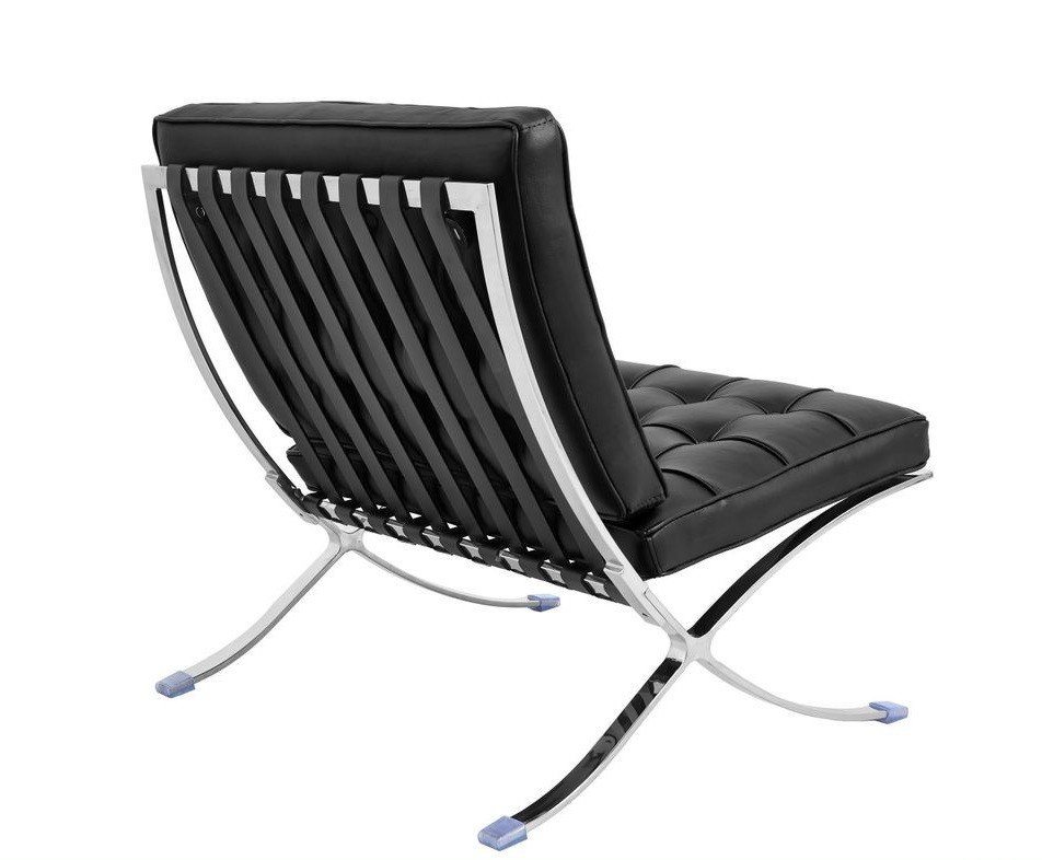 Además, según su descripción, sobresale por: Silla de diseño, acero inoxidable, similpiel negra.