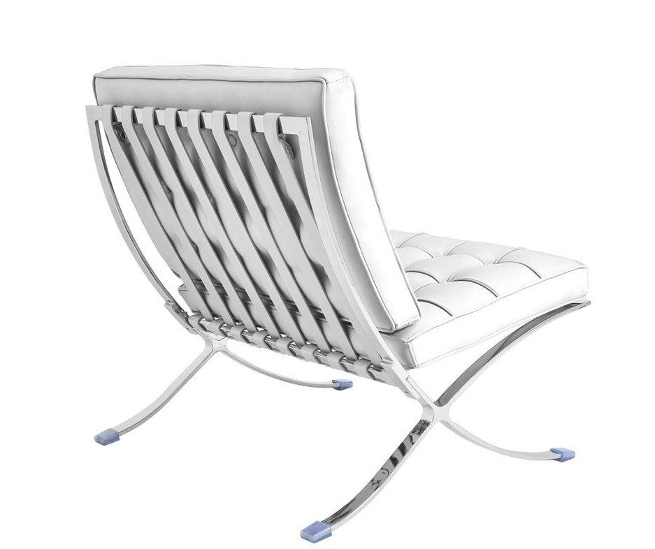Silla de diseño, acero inoxidable, similpiel blanca