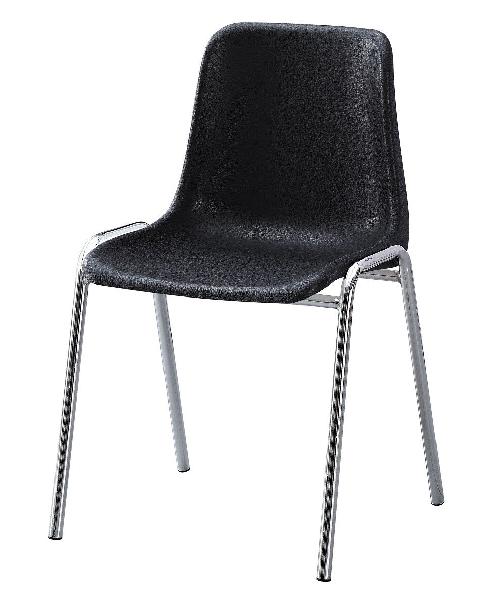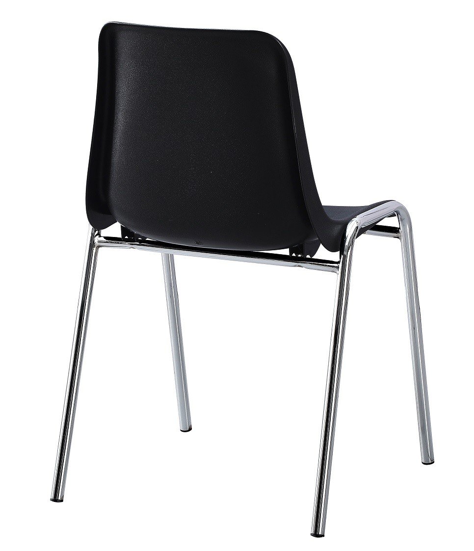 Silla apilable con asiento monoblock de polipropileno negro. Armazón tubular cromado. Otros colores disponibles