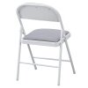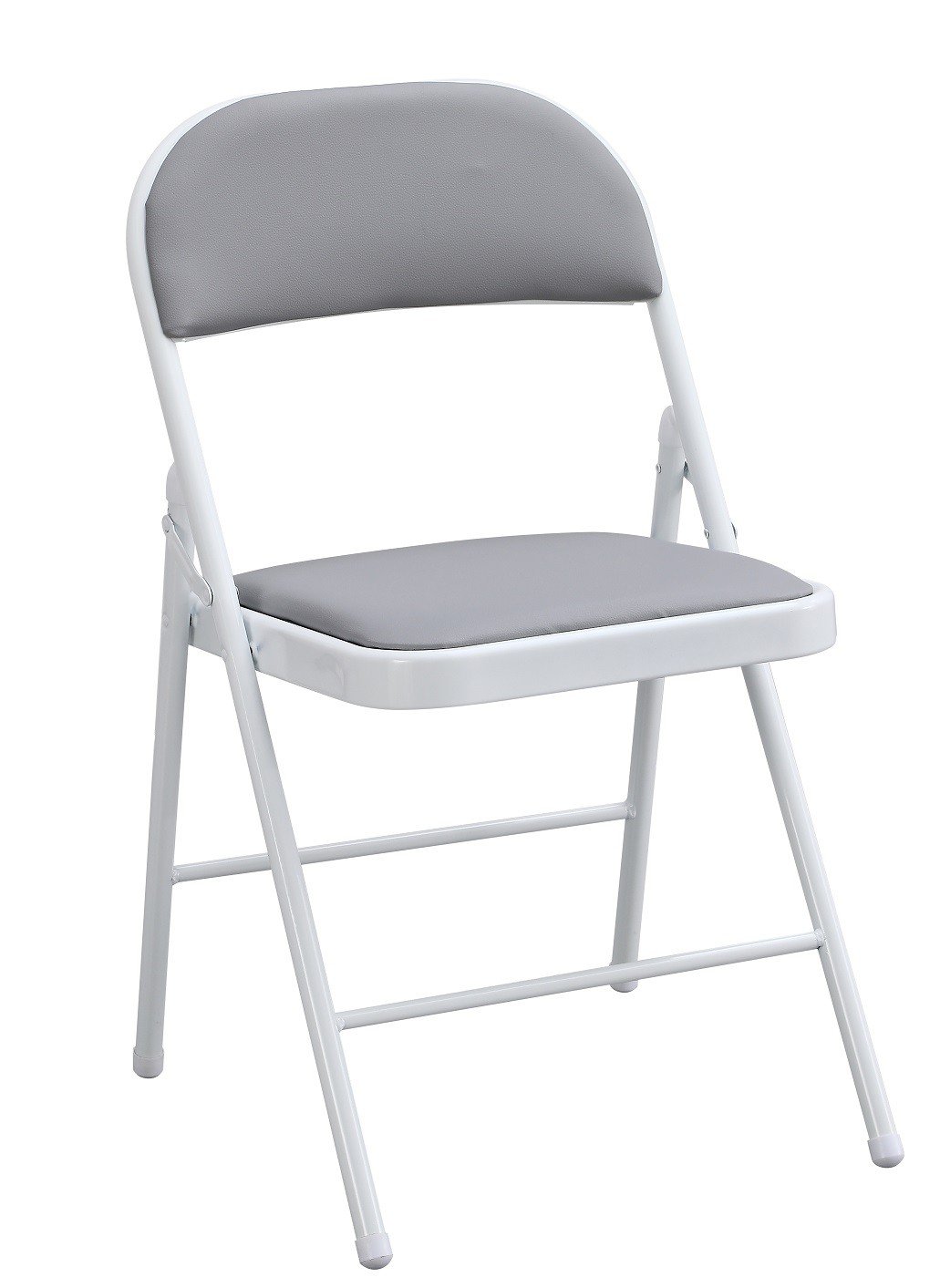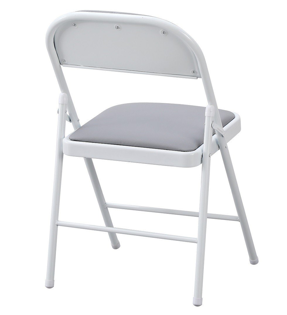 FICHA TÉCNICA: -Silla plegable -Armazón metálico, muy resistente, tubo de acero con acabado epoxi blanco -Asiento y respaldo tapizado con espuma y vinilo de color gris claro -Otros colores disponibles bajo pedido -Se suministra montada DIMENSIONES: Ancho: 45 cms, Ancho asiento: 40 cms, Fondo: 45 cms, Altura: 78 cms, alto asiento 44,5 cms EMBALAJE: cartón UNIDADES: 6 VOLUMEN: 0,141 m3 IMPORTANTE.- Este producto dispone de certificado ( test report ), emitido por laboratorio internacional homologado, en el que se detalla el cumplimiento de la norma UNE o su equivalente internacional.