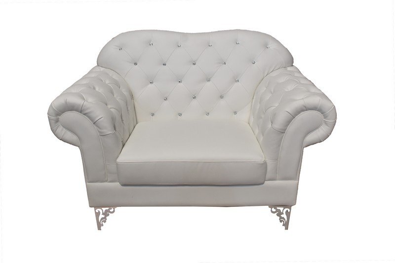 FICHA TÉCNICA: -Sillón de diseño -Fabricado con sólida estructura de madera. -Base de acero inoxidable acabado brillo -Espuma de poliuretano de gran densidad. -Botones efecto brillante. -Tapizado en similpiel blanca DIMENSIONES: Ancho: 120 cms Fondo: 90 cms Altura total: 90 cms EMBALAJE: Plástico y cartón. UNIDADES: 1 VOLUMEN: 0,98 m3