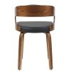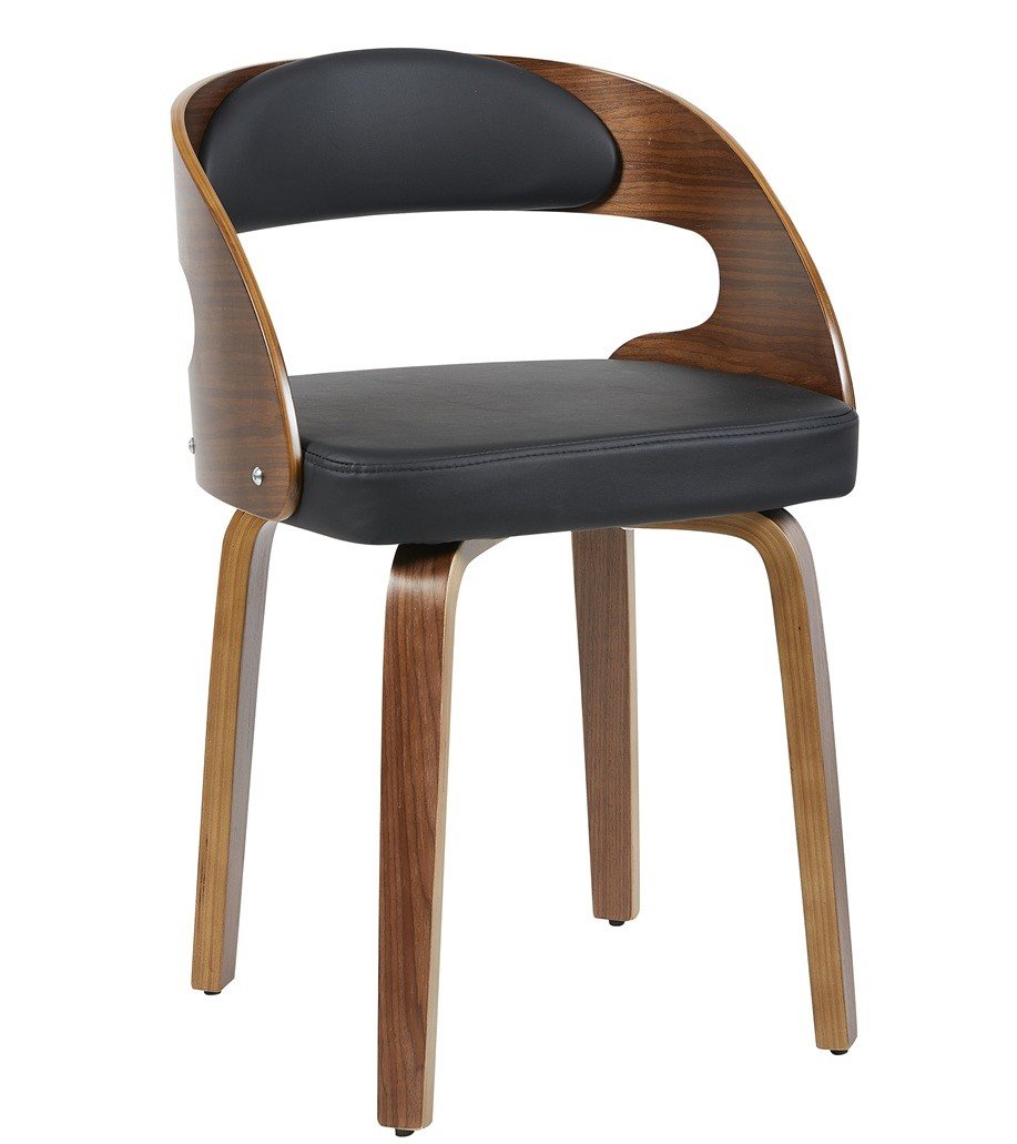 Además, según su descripción, sobresale por: Sillón de diseño, multiusos, contrachapado de madera, asiento tapizado similpiel negra. Taburete a juego con el mismo tapizado y acabado.