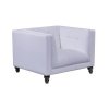Además, según su descripción, sobresale por: Sillón de diseño tapizado similpiel blanca. Sofá de 2 y 3 plazas a juego. Otros colores disponibles.