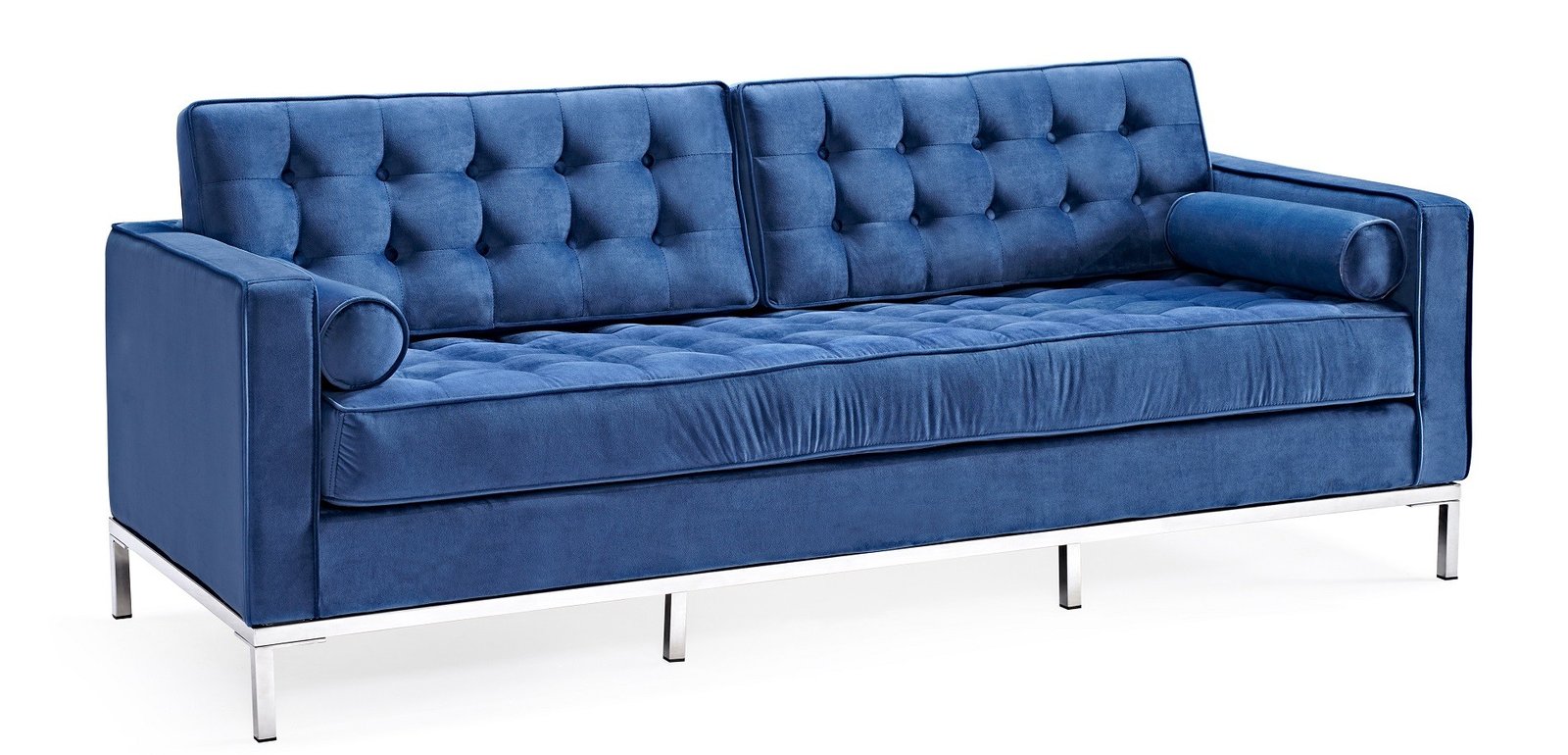 FICHA TÉCNICA: -Sofá de diseño, 3 plazas, multiusos. -Interior con armazón de madera y espuma de gran densidad -Base de acero inoxidable acabado brillo. -Tapizado en tejido velvet de color azul -Sofá de 2 plazas a juego – opcional. -Otros colores disponibles -Sobre pedido podemos suministrar en otros colores. DIMENSIONES: Ancho: 205 cms Fondo: 80 cms Altura: 80 cms EMBALAJE: Plástico y cartón. UNIDADES: 1 VOLUMEN: 1,081 m3 IMPORTANTE.- Este producto dispone de certificado ( test report ), emitido por laboratorio internacional homologado, en el que se detalla el cumplimiento de la norma UNE o su equivalente internacional.