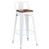 Taburete de diseño, estructura de acero, pintado en blanco con asiento de madera. Uso en interiores o exteriores. Otros colores disponibles. Mesa, silla y sillón a juego