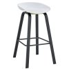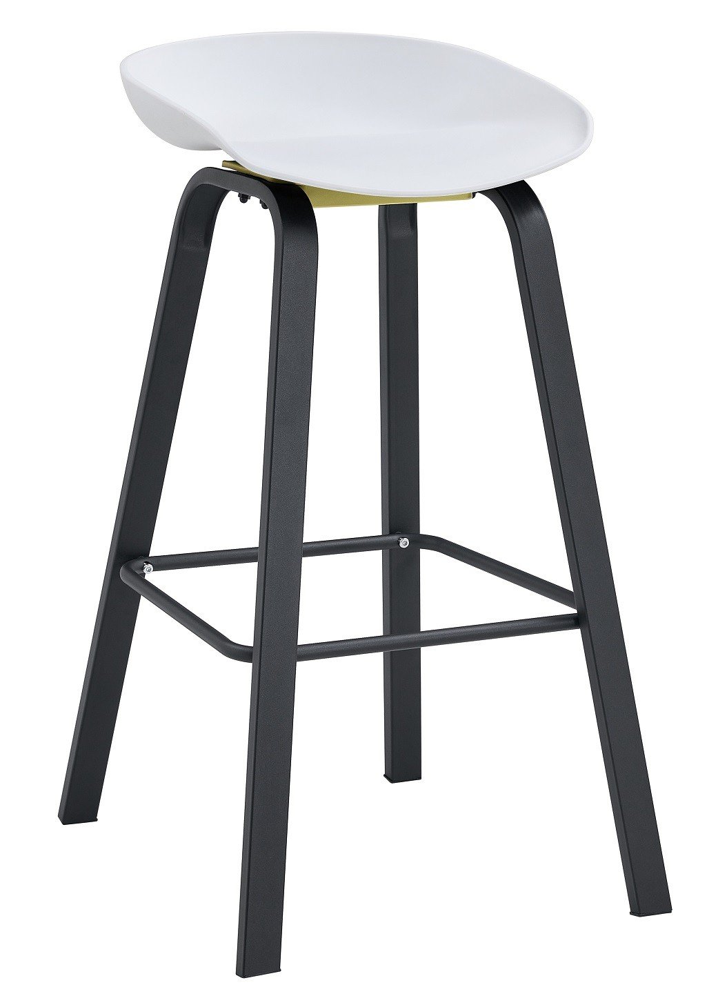 Además, según su descripción, sobresale por: Taburete de diseño, metal negro, asiento de polipropileno de color blanco.